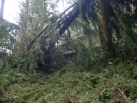 | (3dwiggle) Large blowdown on the trail |