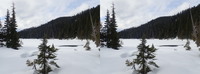 | (3dlr) Snowing at Gold Creek (near the log crossing) |