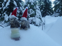 | Spike and Kage get some sun in the snow |